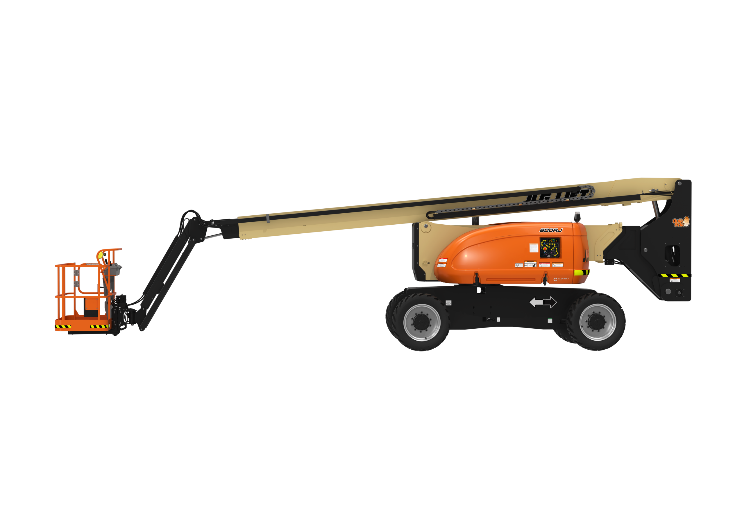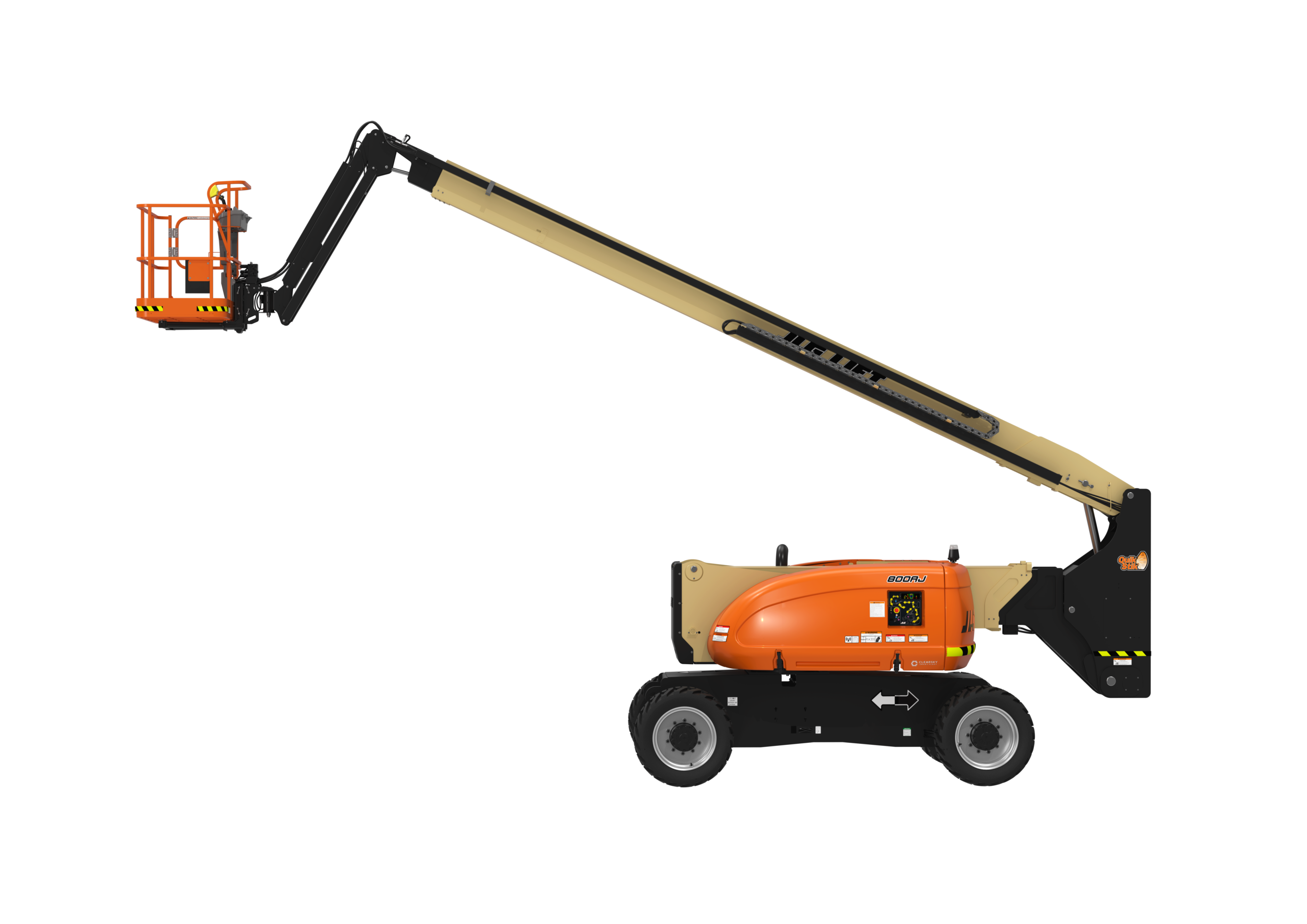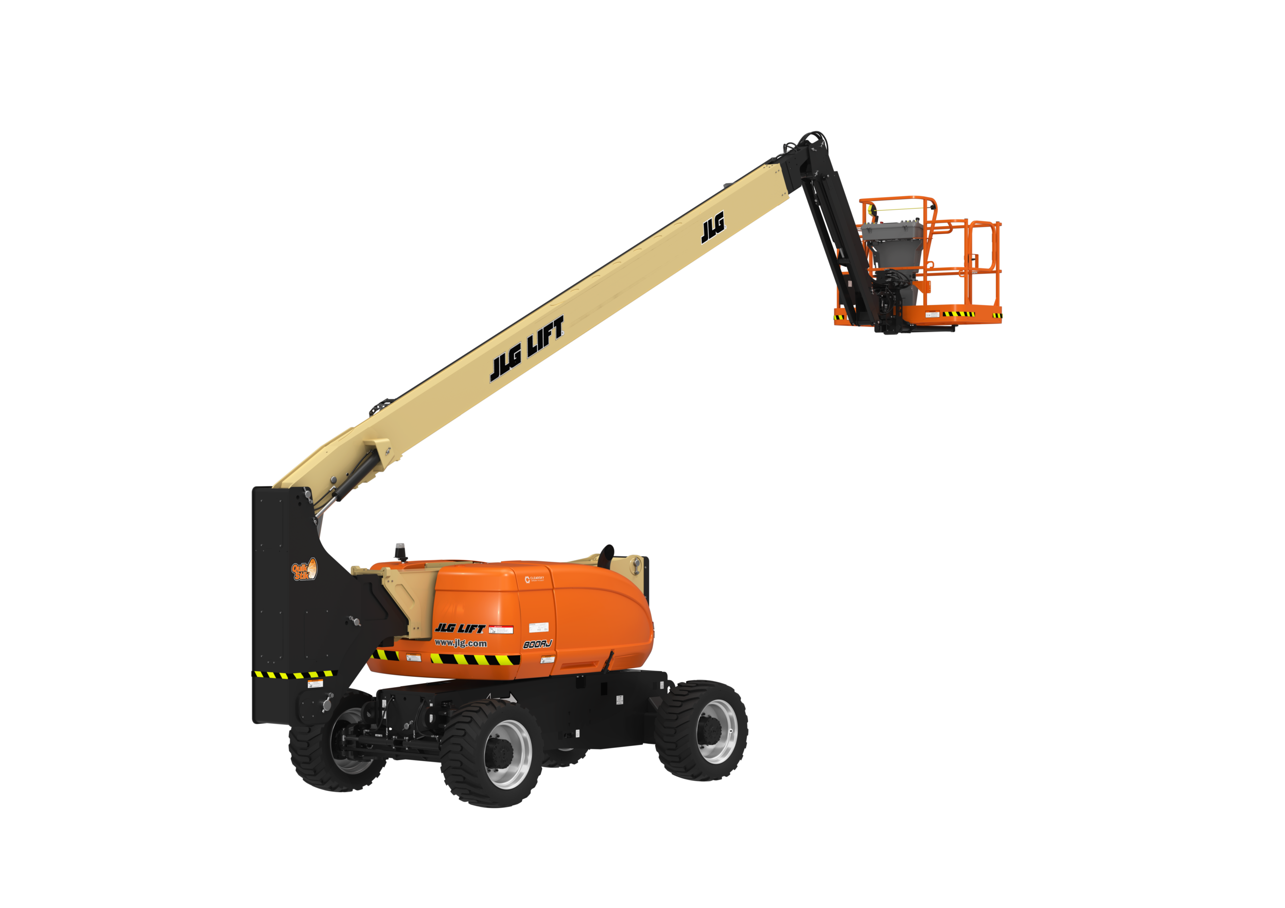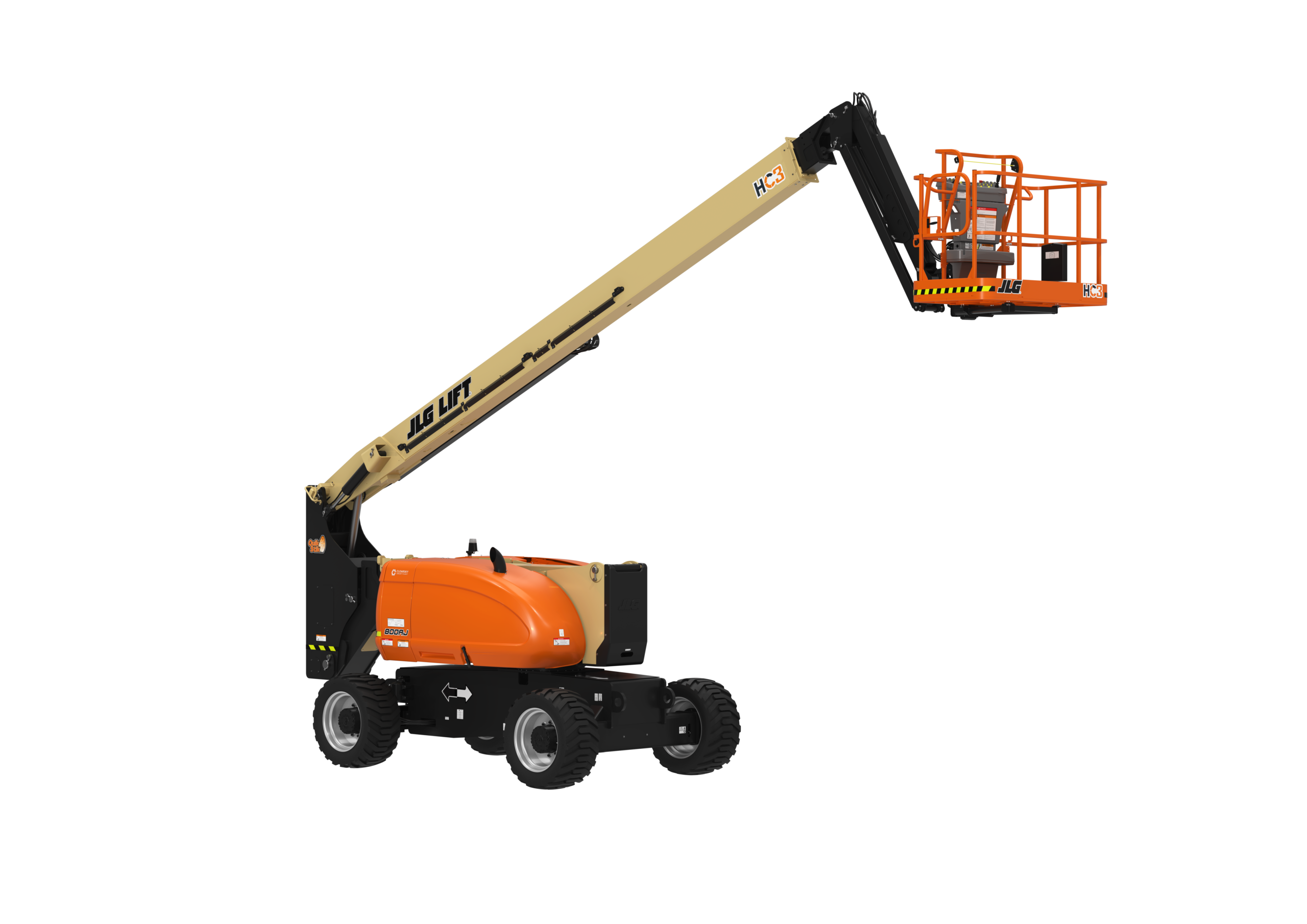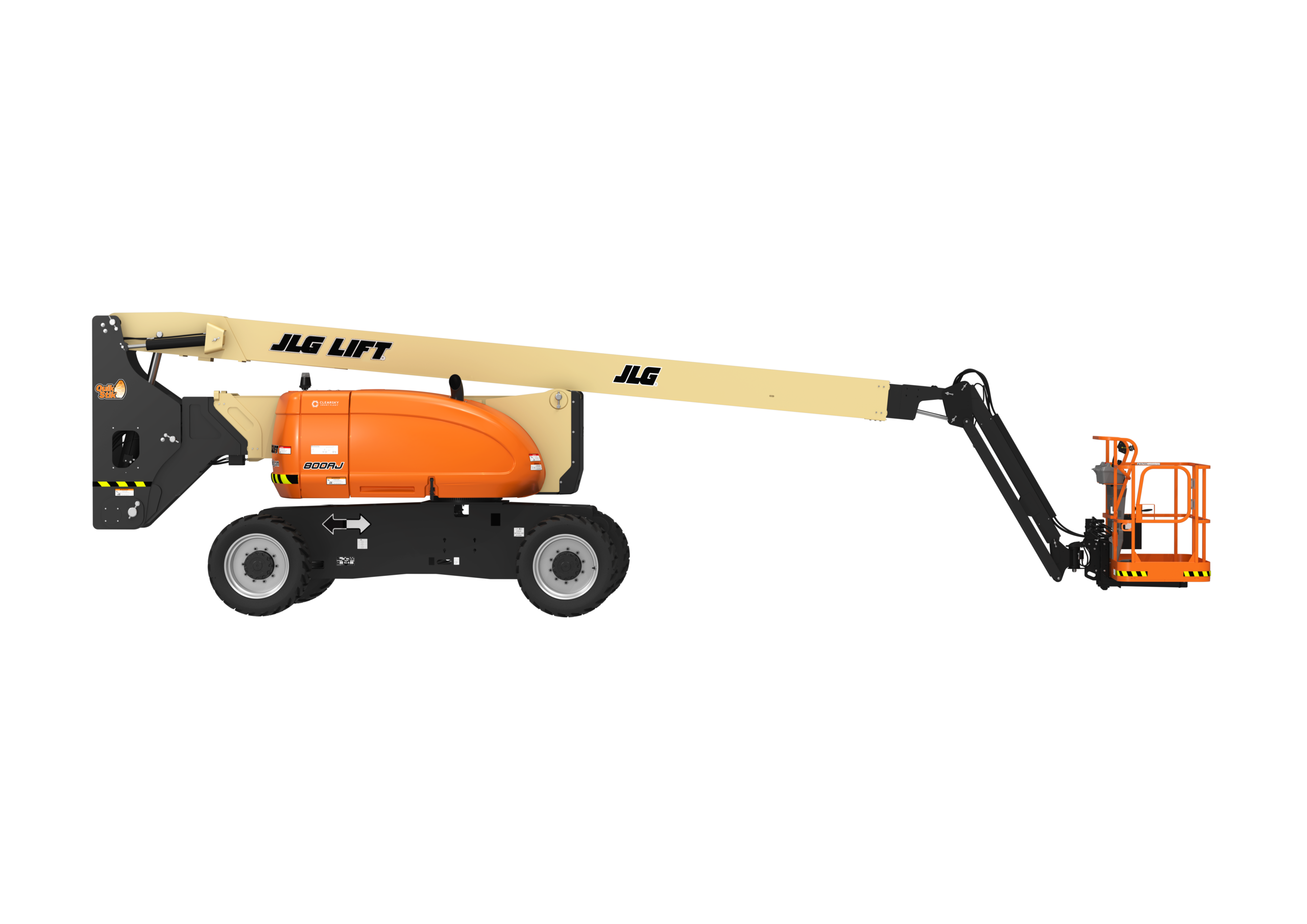 O JLG 800AJ também inclui um LED Motion/Sinalizador âmbar padrão com hardware de conectividade ClearSky Smart Fleet.