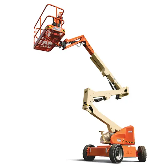 Projetada para eficiência e versatilidade no seu ambiente de trabalho, o JLG E450AJ oferece maior acessibilidade com alcance sobre obstáculos e um jib opcional para áreas de difícil acesso.