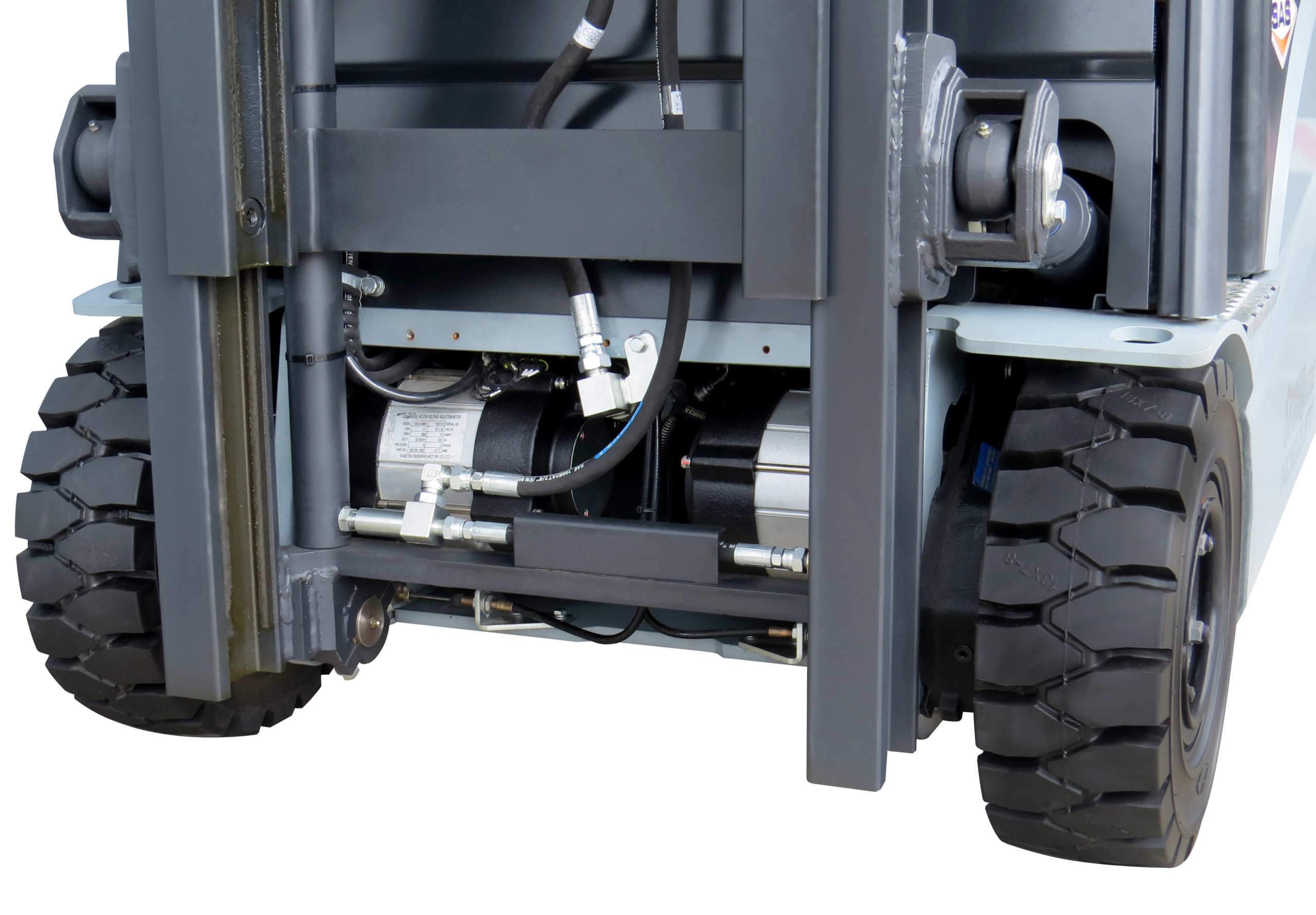 Tração dianteira com dois motores e transmissão ZF (Alemã), assegura melhor desempenho mesmo em espaços reduzidos e condições adversas de piso.